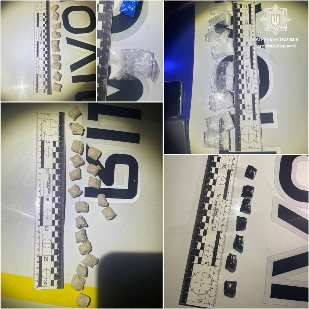 У одного з громадян виявили 7 згортків із речовиною, ймовірно наркотичною, а також 5 згортків, зафіксованих на фотографіях у мобільному телефоні, які, зі слів, він уже встиг розкласти. В іншого інспектори виявили 29 згортків із речовиною, схожою на наркотичну, та ще 5 — раніше розкладених.