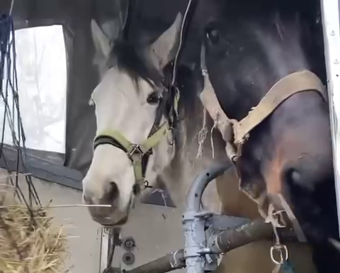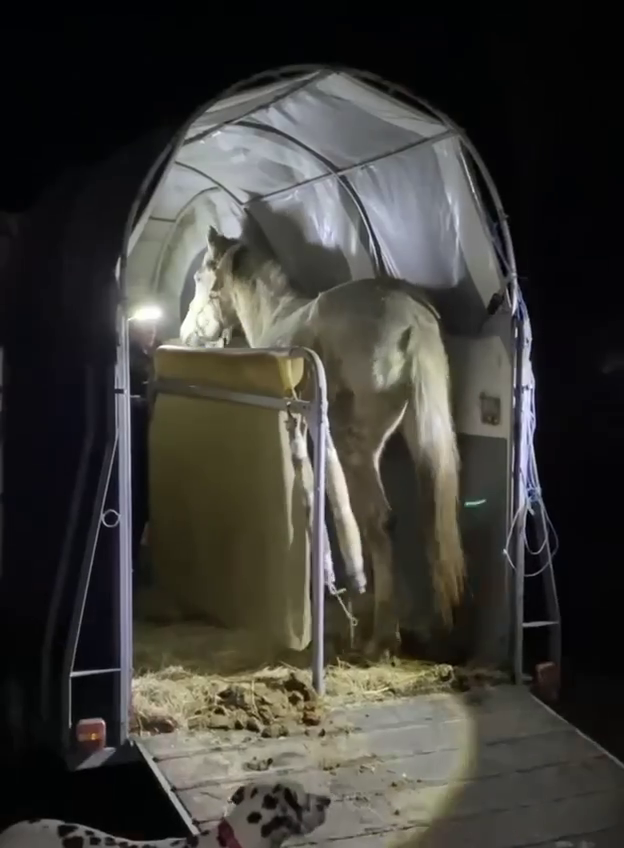 Евакуація проходила під вибухи й загрозу атаки дронів. Один кінь поводився спокійно, інший довго не давався. Найважче було з молодою кобилою, — розповідають волонтери.