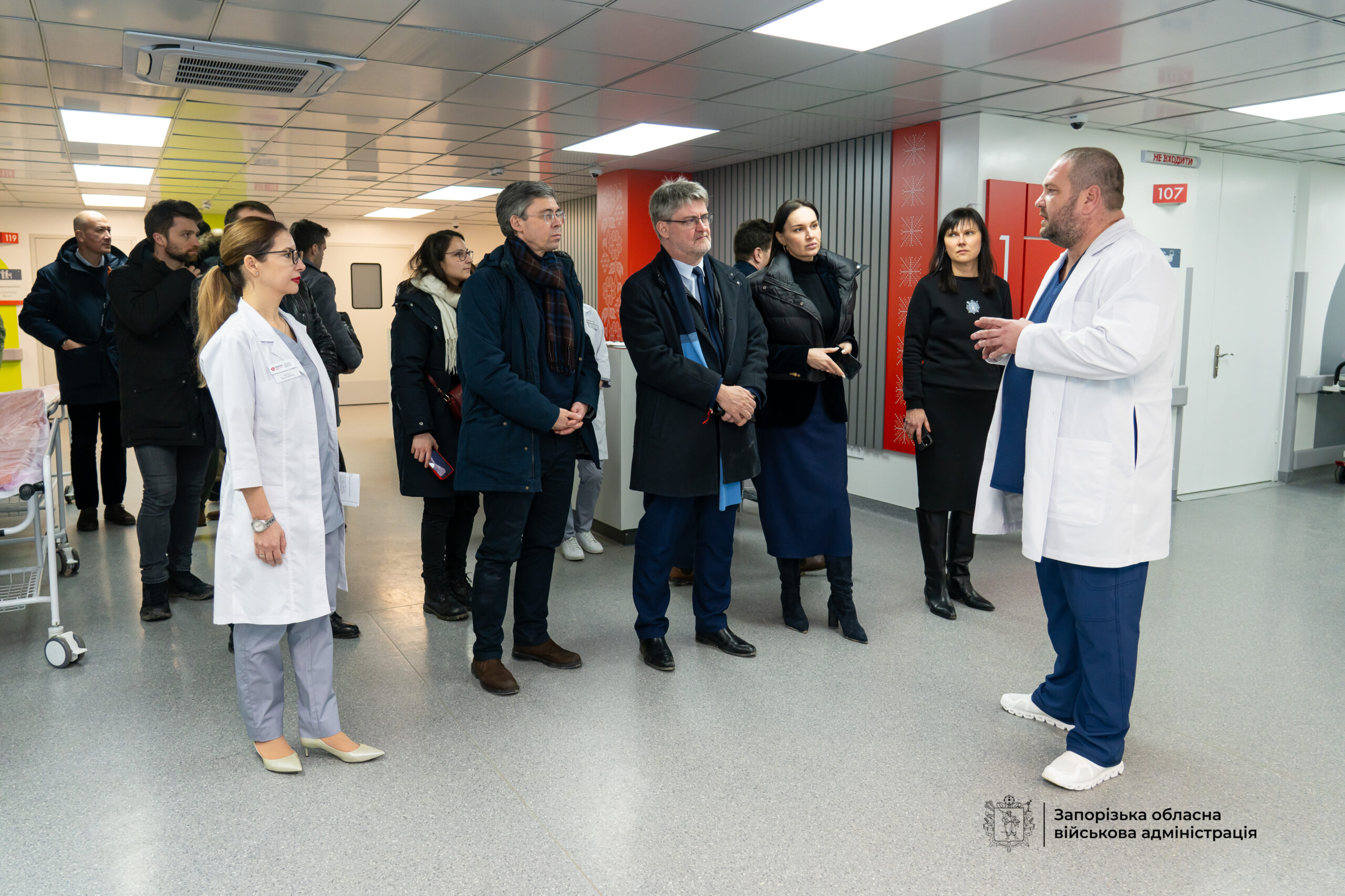 Гаель Весьєр ознайомився з роботою оновленого корпусу міської лікарні екстреної та швидкої медичної допомоги. Побував і на будівництві нового хірургічного корпусу обласної дитячої лікарні з протирадіаційним укриттям.